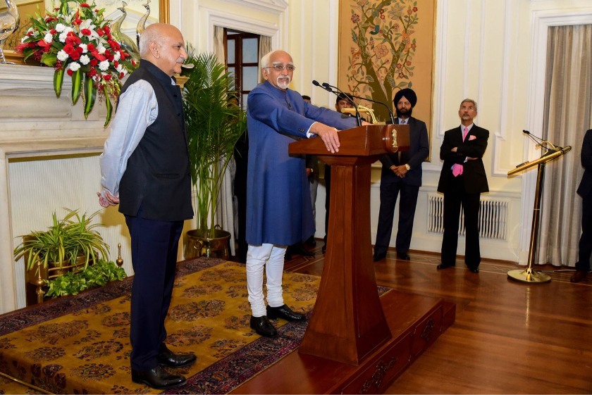 Shri M. Hamid Ansari, Hon’ble Vice President of India addressing the 8th Conference of Heads of Missions, in New Delhi on May 04, 2017. The Minister of State for External Affairs, Shri M.J. Akbar is also seen.