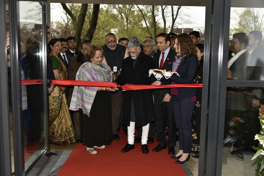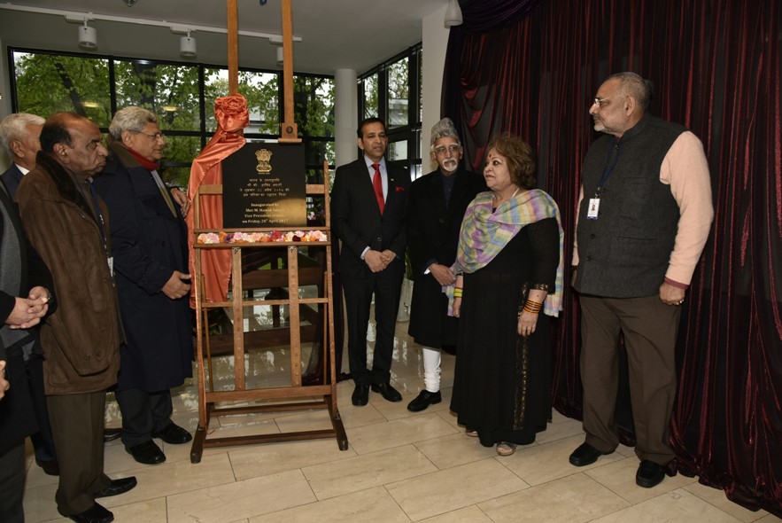 Shri M. Hamid Ansari, Hon’ble Vice President of India inaugurating the Embassy of India Complex, in Warsaw, Poland on April 28, 2017. The Minister of State for Micro, Small & Medium Enterprises, Shri Giriraj Singh is also seen.