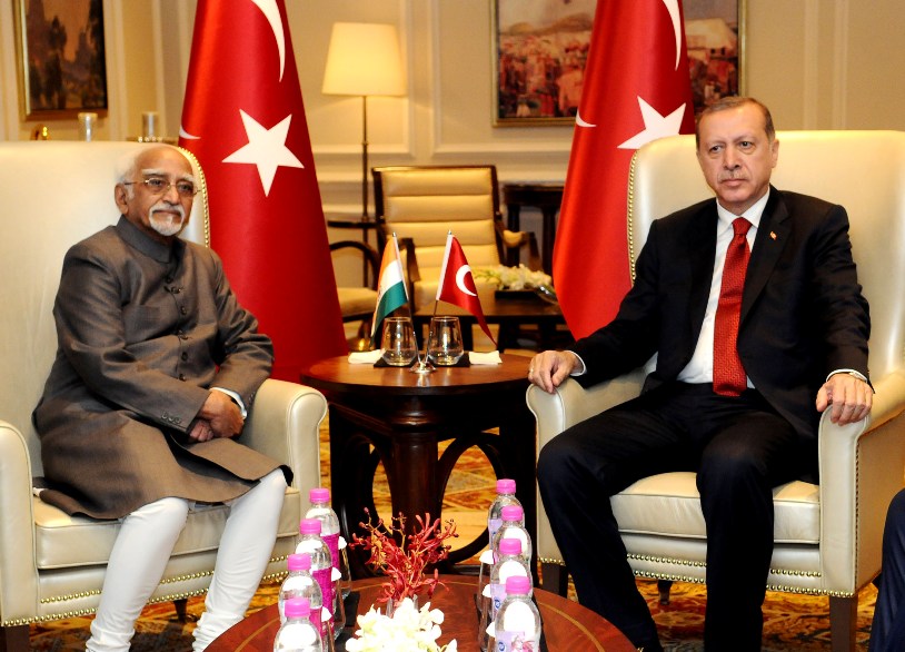 Shri M. Hamid Ansari, Hon’ble Vice President of India calling on the President of the Republic of Turkey, Mr. Recep Tayyip Erdogan, in New Delhi on May 01, 2017.