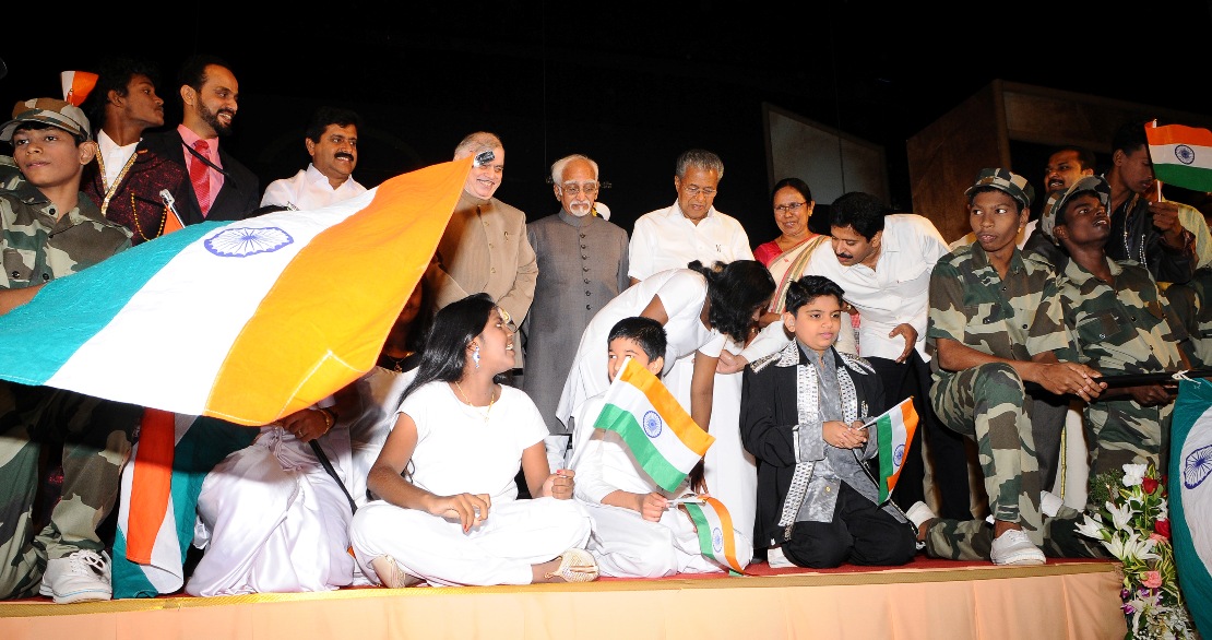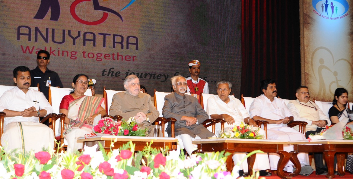- Shri M. Hamid Ansari, Hon’ble Vice President of India witnessing the performance of MPower programme by disabled children under ‘Anuyatra’ campaign of Government of Kerala, in Thiruvananthapuram, Kerala on June 12, 2017. The Governor of Kerala, Justice (Rtd.) Shri P Sathasivam, the Chief Minister of Kerala, Shri Pinarayi Vijayan and other dignitaries are also seen. June 12, 2017