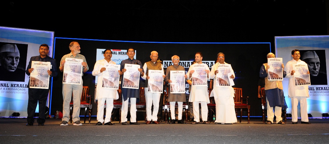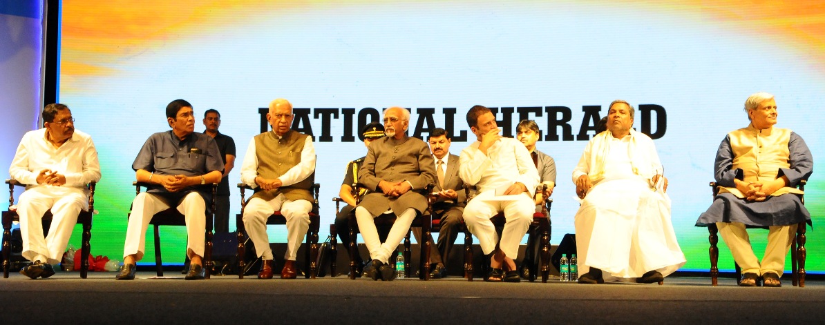 - Shri M. Hamid Ansari, Hon’ble Vice President of India releasing the commemorative edition of National Herald, in Bengaluru, Karnataka on June 12, 2017. The Governor of Karnataka, Shri Vajubhai Rudabhai Vala, the Chief Minister of Karnataka, Shri K. Siddaramaiah, the Vice President, AICC, Shri Rahul Gandhi and other dignitaries are also seen June 12, 2017